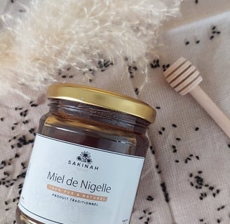 Chez Sakinah Natural, chaque pot de miel de nigelle est soigneusement élaboré pour vous garantir une qualité optimale. Nous nous engageons à vous offrir le meilleur de ce produit ancestral, en préservant toutes ses vertus. Savourez les bienfaits du miel de nigelle avec la certitude que vous choisissez un produit de qualité, riche en nutriments. En intégrant ce miel délicieux à votre alimentation, non seulement vous renforcez votre santé, mais vous vous offrez également une douceur authentique. Optez pour le miel de fleur de nigelle pour une touche de plaisir et de santé au quotidien.